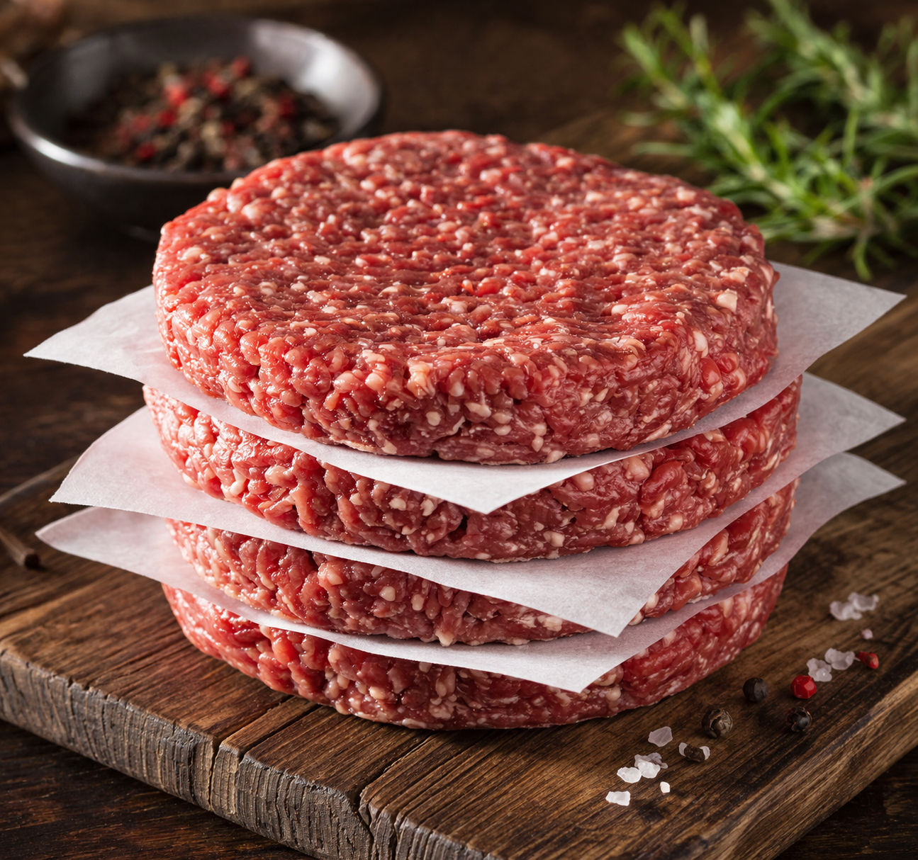 • 4 thick, pre-formed patties